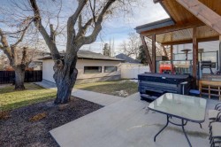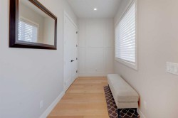 Luxury, location & thoughtful design come together in this exceptional custom-built home by William Blake Homes, just five blocks from both Marda Loop & River Park. Built in 2021, this elegant 2-storey home offers over 3600 sq. ft beautifully finished living space with amazing downtown skyline views from the upper level. A signature feature of this home is its outdoor spaces; set on an expansive (41’x126’) fully landscaped corner lot, the back yard with beautiful mature trees & elevated outdoor gathering spaces includes a covered deck with gas fireplace & built-in speakers, & large concrete patio with hot tub. The striking exterior showcases stucco, stone & faux-wood accents, timber beams & exposed aggregate steps & walkways, as well as Lumenox permanent outdoor lighting. This property includes underground sprinklers, gas bbq outlet & heated oversized (26’x21’) double garage with epoxy floors & built-in shelves. This bespoke home has a highly functional floor plan & professionally curated design. Every detail was lovingly chosen, including stunning designer lighting. Inside, natural light floods through large triple-glazed windows, highlighting wide-plank white oak hardwood floors on both the main & upper levels including the floating stairs. The main floor features a private office with built-in cabinetry, a family room with oversized windows, coffered ceiling, linear gas fireplace, custom millwork, & a large & bright dining area. The chef’s kitchen showcases KitchenAid appliances including a 6 burner gas stove, built-in oven & microwave, elegant tile backsplash, & an expansive quartz island with beverage fridge & extra storage. There’s also a walk-in pantry with window, pocket sliding door, & custom cabinetry for small appliances. The mudroom has been purposefully designed with a bench, cubbies, cupboards & even a built-in dog door! Upstairs, you’ll find a spacious bonus room with linear gas fireplace, custom millwork & built-in desk; an upper laundry room with quartz counter, sink & ample storage; & a stylish 4 piece bathroom with full tile tub/shower combo, tile floors & quartz counters. The luxurious primary retreat overlooks the backyard, offering views of downtown & the property’s gorgeous mature trees (there’s access to the private upper patio to soak in the views). The primary bedroom features a spacious walk-in closet with barn door, custom built-ins & mirror. The spa-like ensuite features tile floors, dual sinks, luxurious soaker tub, large tiled shower & private water closet. Two additional bedrooms are finished with carpet & include closet organizers. The lower level showcases a media/games room with custom millwork, speakers, & wet bar. There’s a gym with mirrored wall & rubber flooring, a 4th bedroom, & a full bathroom. This home includes central air conditioning, & is wired for data, security & speakers throughout. The mechanical system is upgraded including a Daiken Multizone furnace, HRV, infloor heating, & o/s high efficiency hot water heater.