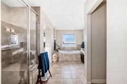 BEAUTIFUL ESTATE HOME | UPGRADES THROUGHOUT | THOUGHTFULLY DESIGNED | SUNNY WEST FACING BACKYARD | This stylish ALBI built estate home is fantastic…ideally located in a quiet cul-de-sac, on a large corner lot (allows for ample parking) with a west facing backyard, offers views of the nearby pond & is nicely located close to the lake entrance allowing you to easily enjoy this four season community! Thoughtfully designed, this home features a terrific floor plan with over 2600 SQ FT!! This home is bright & spacious with an open concept layout, 9' ceilings, & a stunning corner staircase…plus an abundance of natural light. The main level is finished with Brazilian hardwood & tile flooring throughout, offers a large foyer that features a custom built-in bench & coats hooks; there is a front flex room with an elegant set of triple french doors...this space is perfect for a home office, hobby room or even a main floor bedroom (with closet)! The gourmet kitchen, sure to please any chef, showcases full height designer cabinetry, granite counters, custom marble backsplash, stainless steel appliances including a 5 burner gas cooktop & an integrated hood fan...plus a large island & a huge walk-in pantry! The dining area overlooks & opens to the west facing backyard with a large 2 tier deck...perfect for enjoying a sunny afternoon or evening BBQ! The great room, which blends seamlessly off the kitchen & dining areas, offers large windows & a gas fireplace finished with a custom stone & mantle surround…a timeless classic look! Upstairs is host to 3 generous sized bedrooms & a spacious bonus room. The Master bedroom showcases a dramatic vestibule entry with double doors, and features a 2 sided gas fireplace that is shared with the tranquil ensuite…there is a large vanity with dual sinks, granite counters, spa-like soaker tub, oversized tiled shower, and a large walk-in closet with private access to the convenient laundry room. Completing the upper level are the 2 additional bedrooms, each with their own walk-in closet & full 5pc bathroom with dual sinks. The sunny backyard is your private oasis...fully fenced & landscaped with a large tiered deck, mature trees & shrubs, hot tub and a view of the nearby tranquil pond...an ideal place for basking in the sun, enjoying family time or hosting friends & family. Nicely located with quick & easy access to nearby walking paths, schools, shops, restaurants, the lake entrance plus an abundance of other nearby amenities! Other extras include central AC, water softener, BRAND NEW hot water tank, plus EXTERIOR REPAINT of the siding & trim!!!