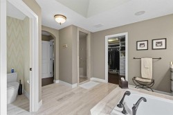 OPEN HOUSE SUNDAY THE 15TH 12:00-2:00!! Nestled on one of Calgary’s most prestigious streets, this custom-built masterpiece is the epitome of refined living, where meticulous craftsmanship meets the serenity of nature. Every detail has been thoughtfully executed, from custom built-ins throughout to premium finishes that blend timeless elegance with modern functionality. The main level, graced with soaring 10-foot ceilings, is designed to impress at every turn. Rich hardwood floors guide you past a private office into a chef-inspired kitchen that is both functional and visually striking featuring a 6-burner Wolf range beneath a custom sculpted stone hood, paired seamlessly with a built-in Wolf oven, microwave, warming drawer, and Sub-Zero fridge. The oversized island, complete with its own prep sink, invites culinary creativity and lively gatherings, while a walk-through pantry and thoughtfully designed boot room provide effortless organization. Custom drapes and blinds throughout the entire home enhance the luxurious finishes, framing the expansive park views and allowing for both light control and privacy. The living room, anchored by a cozy fireplace, flows naturally from the kitchen while the full-length main-floor deck extends the home’s entertaining possibilities outdoors. Sonos sound is wired throughout the home and yard ensuring immersive audio in every space. Upstairs, the primary suite is a private sanctuary with its own reading room, offering a serene escape set against stunning park views that evolve with the seasons. The spa-like ensuite features a steam shower, indulgent finishes, and a massive walk-in closet finished with custom built-ins. Two additional bedrooms, a bonus room, separate laundry room and a 4-piece bathroom complete the upper level, providing ample space for family and guests. The fully finished walkout basement is designed for leisure, wellness, and lifestyle. Here you will find an additional bedroom, 4-piece bathroom, and a family room with in-floor heating and a cozy fireplace providing warmth and comfort, while a stunning indoor pool, set within its own beautifully finished room, offers a private oasis for year-round recreation and relaxation. A sophisticated wet bar complements the space, thoughtfully positioned overlooking the beautiful backyard. Walkout access leads to your professionally landscaped yard by Vision Scape, featuring a private hot tub area and seamless access to Fish Creek Park with walking paths, biking trails, cross-country skiing and breathtaking sunsets all just steps from your door. Upgraded water filtration and UV air systems enhance both luxury and wellness. Car enthusiasts and hobbyists will delight in the triple-car garage with in-floor heating, combining convenience with luxury. This is more than a residence, it is an invitation to a lifestyle of unparalleled elegance, privacy, and connection to nature.