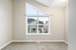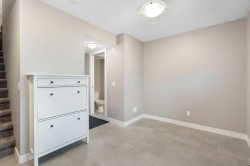 Set in the growing community of Redstone, this well-cared-for townhouse offers 2 bedrooms and 2.5 bathrooms with a practical, well-balanced layout ideal for modern living.The ground level welcomes you with a spacious front entry, a versatile office or recreation area, a convenient 2-piece bathroom, and a utility room. The attached heated garage is thoughtfully upgraded with a 240V 5000W heater, generous overhead storage, and dedicated winter wheel storage, making it as functional as it is convenient.The main living level features laminate flooring throughout and a contemporary kitchen with dark cabinetry, countertops, stainless steel appliances, and a large island that anchors the space. The kitchen flows naturally into the dining area with patio doors leading to a private deck—perfect for everyday meals or casual entertaining. The adjoining living room offers an open, comfortable space to unwind.Upstairs, the primary bedroom includes double closets and a private 4-piece ensuite. The vaulted secondary bedroom adds character and a sense of openness, while a second 4-piece bathroom is conveniently located in the hallway. A dedicated laundry and storage area completes the upper level.With close proximity to schools, transit, major roadways, Calgary International Airport, and quick access to downtown, this Redstone home combines thoughtful upgrades, smart design, and everyday convenience in a well-connected community.