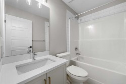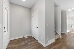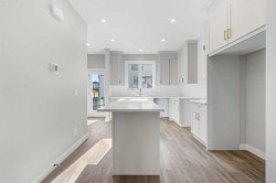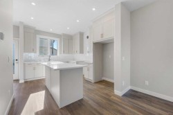 Move-In Ready | The Newport IV | Built by Broadview Homes | 1,380 SqFt | 3 Bed, 2.5 Bath | Top of the Line Finishes | Sparkling Quartz Countertops | Stainless Steel Appliances - Builder's Package | Full Height Cabinets | High Ceilings | Incredible Natural Light | South Facing Backyard | Alley Access | Rear Parking Pad. Welcome to the Newport IV by Broadview Homes — a beautifully designed brand new, move-in ready home offering 1,380 square feet of refined living space with 3 bedrooms and 2.5 bathrooms. Perfectly tailored for modern living, this home combines elegant finishes with functional design in a bright and open layout. The main level features 9’ ceilings that create a spacious, airy feel throughout. A sunlit Great Room welcomes you in and flows seamlessly into the dining nook and stylish kitchen. Thoughtfully designed for both everyday comfort and entertaining, the kitchen showcases a large central island, pot lights, and high-quality cabinetry by Wildwood Cabinets, complete with soft-close doors and drawers. The open-concept layout ensures effortless flow and connection between living spaces. Upstairs, the private primary bedroom offers a peaceful retreat with a walk-in closet and a well-appointed ensuite bathroom. Two additional bedrooms are generously sized and share access to a sleek main bathroom, while the convenient upstairs laundry makes everyday living even more effortless. Crafted with care and quality, this home includes high-efficiency, low-maintenance 100% vinyl windows, an engineered floor system, superior carpet, and a wide selection of luxury vinyl plank flooring and tile in all wet areas. Designed with future potential in mind, this home is also ready for a legal basement suite (subject to city approval). It features a separate side entrance, 9’ basement ceilings, kitchen sink and laundry rough-ins, and a second furnace with HRV system—making it ideal for a mortgage helper or multigenerational living. Located in a desirable new community, this move-in ready home offers an exceptional opportunity to enjoy the quality, style, and peace of mind that comes with owning a brand new Broadview Home. Schedule your private showing today and experience the best of modern living!
