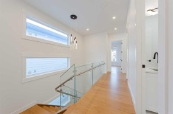 Welcome to this stunning semi-detached 2 storey in the highly sought-after community of Montgomery just minutes from the UofC, Foothills Hospital, Market Mall, Bow River, and a variety of local shops & restaurants! With over 2000sqft, this home is built with quality, luxury and stylish, and combines of convenience and modern living. Steps inside to discover a thoughtfully designed layout with high-end finishes throughout. The main floor features an airy open-concept design, highlighted by a chef’s kitchen with a large island, a bright and inviting family room that leads to the balcony with mountain views! Up along the unique glass railing on stairway, you will find 3 grand sized bedrooms, a laundry room and 2 full bathrooms. The primary suite is a true retreat, packed with mountain views, a walk-in closet and a luxurious ensuite featuring a double vanity, walk-in shower, and a soaking tub. Both main and upper floor has 10ft ceilings! The walk-out basement is a self contained legal suite(approved with permits and subject to final inspection), offering a large recreation/living area, a full kitchen, two bedrooms, and a full bathroom—perfect for your extended family or rental potential! Extras of this home including AC, KitchenAid appliances package, all solid interior doors, intelligent toilet, in-floor heating in basement & heated floors in master ensuite, sunny south facing balcony & backyard...all finished with thoughtfully DESIGNER TOUCHES! Don't miss this gem!