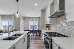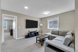 Welcome to your next move-in-ready home located in the thriving and family-friendly community of Cornerstone in NE Calgary! This impeccably maintained and thoughtfully upgraded 2-storey home combines elegant interior finishes, functional design, and built-in revenue potential—making it the ideal opportunity for families, investors, or first-time buyers seeking both lifestyle and long-term value. The main living room features oversized windows that flood the space with natural light, paired with modern luxury vinyl plank flooring throughout. The spacious dining area flows naturally into the chef-inspired kitchen, which boasts quartz countertops, stainless steel appliances, a central island with bar seating, tile backsplash, and ample cabinetry—perfect for hosting, meal prep, or day-to-day family functionality.A convenient 2-piece powder room, mudroom, and direct garage access complete the main floor, enhancing ease of use during Calgary’s dynamic seasons. Upstairs, you'll find a versatile bonus area/loft that can be transformed into a media room, reading nook, or kids’ play zone. The primary retreat is a true sanctuary featuring a generous layout, walk-in closet, and a luxurious 5-piece ensuite bathroom complete with quartz vanity and walk-in glass shower.Two additional spacious bedrooms offer plenty of room for growing families or guests and are serviced by a full 4-piece shared bathroom. The upper floor also includes a convenient laundry area, so you’ll never need to carry laundry up and down stairs. The fully developed illegal basement suite is a rare and valuable asset, ideal for multi-generational living with its own private side entrance. Call your favourite Realtor to book a Showing.