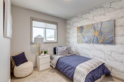 EVERY SHOWHOME HAS ITS MOMENT WHEN THE DOORS CLOSE ON DISPLAY LIFE AND OPEN TO A REAL FAMILY. For this Sasha model in Rangeview by Section 23, THAT MOMENT HAS ARRIVED. Styled to impress from the very first day, it has lived only as a builder’s showcase—polished, elevated, and now offered to its very first owner.Inside, the tone is set by light and materials. Morning sun filters through the EAST-FACING WINDOWS, catching the waterfall edge of the quartz island before carrying across wide-plank hardwood. The kitchen, anchored by a GAS RANGE and finished with a silgranit undermount sink, blends utility with refinement. A POCKET OFFICE near the entry tames weekday clutter, while the living and dining rooms connect easily to the backyard and the community beyond.Upstairs, family life finds room to breathe. The BONUS ROOM becomes the natural gathering point, whether it’s movie night or a quiet Sunday morning. Laundry lands right where it’s needed—on the bedroom level—so weekends feel less like chores and more like time reclaimed. The primary bedroom is paired with a WALK-IN CLOSET AND ENSUITE, while two additional bedrooms keep everyone close but not crowded.The basement carries its own personality. A REC ROOM WITH BUILT-IN CABINETRY and a WINE FRIDGE shifts easily from play space to late-night host. A fourth bedroom and full bath make it functional for guests or older kids, while ZONED HEATING AND COOLING keep comfort consistent across every level. Even the details you don’t see—the 200-amp panel, SPRINKLER SYSTEM, and gas BBQ rough-in—prove this is a home designed to last.Step outside, and the story widens. Rangeview by Section 23 is Calgary’s first garden-to-table community, where pathways lead to orchards, neighbours gather around harvest tables, and connection is built into the streetscape itself. Just as the community is designed to nurture, this home was designed to live beautifully from the start.Tour the showhome while it still carries that title—before it begins its next chapter as yours.