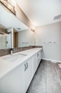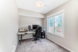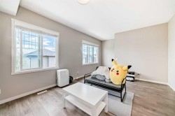 Welcome to your beautiful townhome!As you park in the warm and spacious double garage, you’ll step into a welcoming foyer complete with a large closet—perfect for storing coats, shoes, and guests' belongings. This entry level also includes a versatile room ideal for a home office, gym, or cozy den, along with a convenient utility room.Upstairs, the main living area offers an expansive and bright open-concept space. Enjoy warm summer evenings on the attached balcony just off the generous living room. The heart of the home is the stunning kitchen, featuring ceiling-height cabinetry, sleek stainless-steel appliances, and a large white quartz island—perfect for both meal prep and casual dining. Adjacent to the kitchen, you’ll find a spacious formal dining area and an inviting living room, perfect for entertaining. A thoughtfully placed powder room adds convenience and privacy to this level.On the upper floor, you’ll find two well-sized bedrooms with ample closet space—ideal for a growing family—as well as a conveniently located laundry area. The luxurious primary suite features large windows with custom window treatments, a massive walk-in closet with built-in shelving, and a spa-like ensuite with double sinks, quartz countertops, a separate toilet area, and a spacious 5-foot walk-in shower. An additional four-piece bathroom serves the secondary bedrooms. Please book your showing as soon as possible.