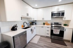 Fully Renovated Duplex | Quiet Street | Large Lot with Alley AccessWelcome to this beautifully renovated duplex in Penbrooke Meadows, updated in 2022 and thoughtfully refreshed from top to bottom. This move-in-ready home is perfect for first-time buyers, families, or investors looking for a low-maintenance property with future potential.The interior features a modern kitchen with updated cabinetry, stylish tile backsplash, new appliances, and contemporary finishes. The home has been upgraded with new flooring, fresh paint, updated plumbing fixtures, and a renovated bathroom, creating a clean and cohesive look throughout. A custom feature wall adds character and warmth, while the fully finished family room provides additional living space ideal for relaxing or entertaining. The laundry and mechanical room are also fully finished for added convenience.Step outside to a generous backyard with back-alley access, offering plenty of space to build a future garage or enjoy outdoor living. Located on a quiet, family-friendly street, this home is just a short walk to the local elementary school and close to parks, transit, shopping, and major roadways.A solid opportunity in an established community — updated, well located, and full of potential.