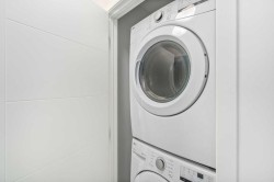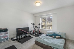Step into modern comfort with this beautifully designed 2-bedroom, 2.5-bath townhome in the heart of Copperfield. Built in 2024, this bright and contemporary home offers over 1,400 sq. ft. of living space with clean lines, smart design, and quality finishes throughout. The open-concept main living area on the second floor is filled with natural light and features engineered laminate flooring, a stylish kitchen with quartz countertops, upgraded cabinetry, and stainless steel appliances. The spacious living and dining areas flow seamlessly to the balcony with a BBQ gas line—perfect for morning coffee or summer grilling. Upstairs, you’ll find two comfortable bedrooms, each with its own full bathroom, plus convenient upper-floor laundry. The ground level offers a tandem double garage (16’ x 40’) and access to a private rear patio space—great for relaxing or adding some greenery. Additional highlights include low condo fees ($259/month), new home warranty coverage, and a quiet location close to parks, playgrounds, schools, and shopping. Whether you’re a first-time buyer, young professional, or looking for a low-maintenance lifestyle in a growing community, this townhome checks all the boxes.