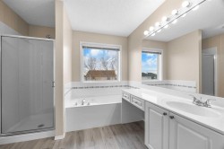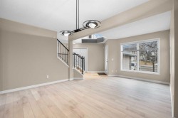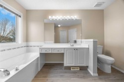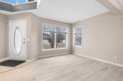Welcome to this beautifully updated family home in the sought-after community of Panorama Hills, offering 3 bedrooms, 2.5 baths, and 1,824 sq ft of thoughtful living space. With recent upgrades including a 2025 roof (level 3), new vinyl plank flooring throughout, new garage door, and freshly painted deck and fence, this home is move-in ready and built to last. Step inside and be greeted by a soaring 2-storey foyer that creates an immediate sense of openness and light. The bright Living room and formal Dining room provide an ideal setting for family gatherings and entertaining. Continue through to the sunny South-facing Family room with gas fireplace and built-in shelves, seamlessly connected to the Breakfast nook and white Kitchen. The Kitchen features a centre island, ample cabinetry, and pantry, offering both function and style. From the Nook, step out to the large deck overlooking the fully fenced, South-facing backyard—perfect for summer barbecues, gardening, or outdoor play. A powder room completes the main level.On the upper level, the spacious Primary bedroom offers a peaceful retreat with a walk-in closet and 4-piece ensuite bath featuring a jetted tub. Two additional well-sized bedrooms and a 4-piece bath complete this level, providing comfortable space for family or guests. The unfinished basement with bathroom rough-in is ready for your personal touch, offering excellent potential for future development. Additional highlights include new durable vinyl plank flooring throughout the entire home and a double attached garage.Located in Panorama Hills, this home offers the best of family-friendly living in one of Calgary's most desirable Northwest communities. Enjoy close proximity to top-rated schools, Panorama Hills Golf & Country Club, shopping at Superstore and Country Hills Village, Vivo Recreation Centre, transit, and major roadways including Stoney Trail—making commuting and everyday errands a breeze. This move-in ready home combines recent upgrades, South-facing light, and an unbeatable location.