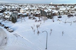 This beautiful home begins with a charming front porch that adds to its curb appeal. Inside, the main floor features hardwood floors, an abundance of natural light and a large separate living room with a gas fireplace and an oversized front window. The kitchen is every home chef’s dream, featuring stainless steel appliances, including a new dishwasher installed in 2021, an oversized island, and lots of full-height cabinets as well as a pantry for additional storage. The dining area sits just off the kitchen at the back of the house and features another oversized window along with easy access to the backyard. The oversized windows at both the front and back of the home create a bright space filled with a lot of natural light and sunshine.Upstairs, the primary bedroom is a relaxing retreat with a feature wall, walk-in closet and a private 3-piece ensuite. Two additional bedrooms on this level are both bright and generously sized and share a large 4-piece bathroom.The basement is framed and ready for your development, giving you the ability to create the additional space you need, and yes it includes a bathroom rough-in.Outside, the low maintenance backyard features an oversized deck and is privately tucked between the house and double detached garage.Recent updates include a new furnace in 2022 and a new water heater in 2023.Ideally located within walking distance to parks, local schools, community centre and other amenities nearby. You are also close to shopping and restaurants in Mahogany, 130th Avenue and McKenzie Towne. This is a well cared for home in a fantastic family friendly location, don’t delay and book your showing today!