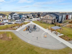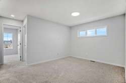 Welcome to 64 Homestead View—a residence that blends everyday practicality with elevated design. Positioned on a corner lot, this spacious home offers added privacy, generous outdoor space, and impressive curb appeal.The main floor features a convenient bedroom and full bathroom, providing an ideal setup for guests, multi-generational living, or a private home office. The heart of the home opens into a stylish kitchen equipped with quartz countertops, 42" upper cabinetry, a pantry, a kitchen island, and stainless-steel appliances that deliver both performance and refinement. Premium finishings—including rich flooring, sleek tile, and plush carpet—create a cohesive and inviting atmosphere throughout. A welcoming fireplace in the great room adds warmth and ambiance.Upstairs, a large central bonus room offers the perfect space for a media area or playroom, complemented by three well-appointed bedrooms. A full laundry room on this level adds everyday convenience. The primary bedroom serves as a relaxing retreat, complete with a 4-piece ensuite and a spacious walk-in closet.Outside, the home includes completed front-yard landscaping and a concrete parking pad for added flexibility. A rear deck provides the perfect spot for outdoor entertaining and convenient access to the yard, allowing indoor and outdoor living to blend seamlessly. With an additional entrance, the property also includes a fully developed secondary legal suite that can generate additional income—an excellent opportunity for both investors and homeowners.Located in the new community of Homestead, residents can enjoy a 19-acre environmental wetland with a sheltered gazebo and winding pathways, 4 km of walking trails with connections to the regional pathway system, a 3-acre community association site, a cricket pitch, soccer fields, and future pickleball and basketball courts. Shopping and restaurants are close by, and the Genesis Centre and Prairie Winds Park are only minutes away. Homestead offers activities for everyone—don’t miss your chance to experience all it has to offer. Contact the showhome today!