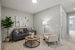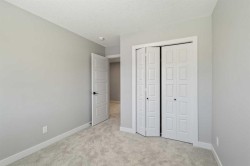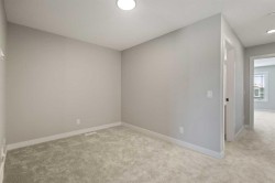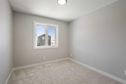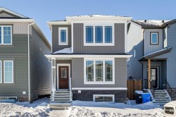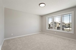 Welcome to this beautifully crafted 2025-built residence in the sought-after NW community of Moraine. Thoughtfully designed and impeccably finished, this home offers a refined balance of modern comfort and everyday functionality.Step inside to soaring 9-foot ceilings and a seamless open-concept layout where natural light pours through oversized windows, illuminating the warm luxury vinyl plank flooring throughout the main level. The kitchen is a statement in both design and performance—featuring quartz countertops, full-height cabinetry with crown detailing, premium stainless steel appliances including a gas range, and a spacious pantry for effortless organization. The adjacent dining and living areas create an inviting space for hosting or unwinding in style.A versatile east-facing flex room on the main floor provides the perfect setting for a home office, reading lounge, or private retreat.Upstairs, a thoughtfully positioned bonus room separates the secondary bedrooms from the primary suite, offering enhanced privacy and a quiet escape. The primary bedroom is generously scaled, complete with a walk-in closet featuring a large window and a well-appointed 4-piece ensuite. Two additional bedrooms, a full bath, and an expansive laundry room complete the upper level with both comfort and practicality in mind.The undeveloped basement presents exceptional future potential with a separate entrance, 9-foot ceilings, bathroom rough-in, second furnace, and laundry rough-ins already in place—ideal for customization to suit your lifestyle needs.Outside, the west-facing backyard is designed for enjoyment, with a double parking pad ready for a future detached garage. Perfectly positioned across from a playground and just minutes from schools, major shopping destinations, dining, and key transportation routes including Stoney Trail and Deerfoot Trail, this location delivers both convenience and connection.A rare opportunity to own a sophisticated new home in one of NW Calgary’s emerging communities.
