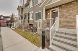 Welcome to 659 Evanston Manor, a bright and modern townhome in the sought-after ARRIVE complex in Evanston. Ideally situated in one of the best locations in the community, this home is tucked into a quiet back corner away from the traffic of 14th Street and Symons Valley Road, yet still just a quick walk or drive to main conveniences. Offering one of the most desirable floorplans in the development, this unit features three bedrooms, two full bathrooms upstairs, an attached double garage, and a competitive condo fee under $400.Step inside to an inviting open-concept main floor where the living room, dining area, and spacious kitchen flow seamlessly together. The kitchen impresses with its large island, generous cabinetry, and a walk-in pantry rarely found in townhomes. From here, enjoy access to your large private balcony—perfect for a BBQ or relaxing in the sun. A convenient two-piece powder room completes the main level.Upstairs, the primary bedroom is a true retreat with vaulted ceilings, double closets, and a well-appointed three-piece ensuite. Two additional good-sized bedrooms and a four-piece bathroom provide comfortable space for family, guests, or a home office. The lower level adds even more functionality with a family or flex room, laundry area, and direct access to your attached double garage—keeping daily living easy year-round without having to step outside. This well-located townhome combines space, comfort, and convenience in a fantastic Evanston location.