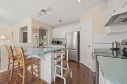 Nestled on a quiet, family-friendly street, this beautifully maintained home offers the perfect blend of comfort, convenience, and lifestyle. Walk the kids to Somerset School (K–4) and Samuel W. Shaw School (5–9), with Centennial High School just minutes away in Sundance. You’ll love being steps from Somerset’s splash park, playgrounds, parks, and scenic pathways, plus easy access to Shawnessy shopping, dining, services, and transit.From the moment you arrive, the charming curb appeal, mature trees, and double attached garage make a great first impression. Inside, a spacious front entry leads into a warm and inviting main floor. The bright living room features laminate flooring, a cozy fireplace, and large windows that flood the space with natural light. The open dining area flows seamlessly into the kitchen, complete with stainless steel appliances (fridge 2020), ample cabinetry, a large pantry, and a functional eating bar.Step outside to the sunny, south-facing backyard and enjoy the expansive wood deck — perfect for warm weather BBQs, entertaining, or relaxing in the sun.Upstairs, newer carpet runs throughout, and the oversized primary retreat offers a walk-in closet and private ensuite. Two additional bedrooms and a full 4-piece bath complete the upper level.The fully finished basement provides fantastic extra living space with a large family room, flexible areas for a home office, gym, or playroom, plus a laundry room and generous storage.Lovingly cared for and truly move-in ready, this home represents outstanding value in one of Calgary’s most sought-after, established communities. With a refreshed price and new opportunity, now is the time to book your private showing!