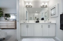 **BRAND NEW HOME ALERT** Great news for eligible First-Time Home Buyers – NO GST payable on this home! The Government of Canada is offering GST relief to help you get into your first home. Save $$$ in tax savings on your new home purchase. Eligibility restrictions apply. For more details, visit a Jayman show home or discuss with your friendly REALTOR* SOLAR ENERGIZED HYBRID PERFORMANCE HOME * VERIFIED Jayman BUILT Show Home! ** Great & rare real estate investment opportunity ** Start earning money right away ** Jayman BUILT will pay you $ per month to use this home as their full-time show home ** PROFESSIONALLY DECORATED with all of the bells and whistles. Exquisite & beautiful, you will immediately be impressed by Jayman BUILT's "AVID 20" SHOW HOME located in the highly sought after lake community of Mahogany. A lovely neighborhood with great amenities welcomes you into over 1800sqft of above grade living space featuring stunning craftsmanship and thoughtful design. Offering a unique open floor plan boasting a stunning GOURMET kitchen with a beautiful centre island with flush eating bar & sleek stainless steel Whirlpool appliances including a French door refrigerator with ice maker and internal water, electric range and microwave hoodfan. Stunning elegant Polaire QUARTZ counter tops in kitchen, spacious walk-in pantry, soft close slab cabinets and stainless steel undermount sink compliment the space. Enjoy the generous dining area that overlooks the spacious Great Room with the stunning Arts & Crafts elevation out front along with an additional FLEX SPACE located at the front of the home - Could be a fourth bedroom or a bright office/den and HALF BATH located on the main level for additional family members or visiting guests that prefer no stairs. You will discover the 2nd level boasts 3 sizeable bedrooms with the Primary Bedroom including a gorgeous 4 pc private expanded en suite with a shower, double vanities and generous walk-in closet along with 2nd floor laundry for ease of convenience. In addition, enjoy a nicely centralized Bonus Room that separates the two additional bedrooms and the Primary Suite for additional privacy. The lower level has 3 pc rough in for future bath development and the back yard has space for you to a build double detached garage at your leisure. Enjoy the lifestyle you & your family deserve in a beautiful Community you will enjoy for a lifetime! In addition your Jayman home offers Core Performance with 14 SOLAR PANELS, triple pane R-8 windows & dual argon gas filled with casement, Daikin FIT electric air source heat pump with natural gas back up, ultraviolet air purification system & Merv 13 filter, tankless hot water heater and Smart Home Technology Solutions. Hybrid Benefits include: $1,500 in annual energy savings, 4.2 metric tonnes of greenhouse gases saved per year, 60% more energy efficient than minimum code in Alberta requires. The highly efficient heat pump provides heat and air conditioning while lowering carbon emissions.