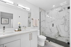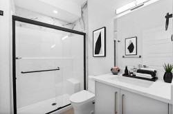6-plex CMHC MIL PROGRAMME QUALIFIED featuring 4 bedrooms and 3 full bathrooms. The main floor boasts a bedroom with a full standing shower, a modern kitchen equipped with high-end stainless steel appliances, and gas stoves. The kitchen also includes a built-in pantry for added convenience. Upstairs, you will find 3 generously sized bedrooms and 2 full bathrooms, along with front-load washers and dryers for efficient laundry care. LEVEL 7 VINYL FLOORING THRU OUT ALL 6 UNITSEach basement unit is designed with 2 spacious bedrooms with oversize windows, a living room, kitchen/dining area, and separate laundry facilities. The back units offer 2 bedrooms and a den. The building is equipped with 6 gas meters, 6 electric meters, 3 bike storage areas, 3 storage units, and 3 single garages. Located conveniently close to all amenities, this property provides modern living with unmatched functionality.
