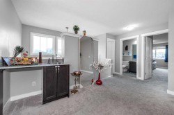 ENJOY A HUGE, FULLY PRIVATE, ZERO MAINTENANCE BACKYARD ON A TRADITIONAL LOT - CORNER LOT HOUSE - PROFESSIONALLY FINISHED BASEMENT - 4 BEDROOMS + BONUS ROOM - EXTENDED 3-CAR DRIVEWAY - DUAL WET BARS - WHOLE-HOME WATER FILTRATIONWelcome to this beautifully upgraded 4-bedroom, 3.5-bath corner-lot home in Legacy—perfect for families seeking space, privacy, and modern convenience. The star of the property is the huge, fully private, zero-maintenance backyard, featuring artificial turf, a tiled deck, and alley access with tucked-away garbage storage. This rare traditional lot gives you room to relax, entertain, and enjoy year-round outdoor living.Inside, the open-concept main floor includes a gourmet kitchen with granite counters, stainless steel appliances, extended-height cabinetry with a wine rack, a massive island, and a corner pantry. The bright dining area flows into the cozy living room with a gas fireplace, creating a warm, inviting space for gatherings.Upstairs offers three generous bedrooms plus a versatile bonus room with a wet bar and filtered water tap—ideal for movies, gaming, or a family lounge. The primary suite features a walk-in closet and private ensuite, while two additional bedrooms share a stylish 4-piece bath.The professionally finished basement adds even more value with a fourth bedroom, full bath, family room, second wet bar, and excellent storage—perfect for guests or teens.Additional upgrades include a whole-home water filtration system, custom garage shelving, Ethernet ports throughout, upgraded lighting, and an extended 3-car driveway with abundant corner-lot street parking.Located across from Legacy’s brand-new school, close to parks, paths, shopping, and transit—this is the perfect time to buy in this fast-growing community.