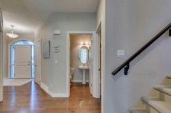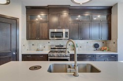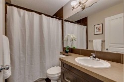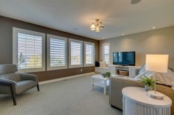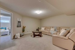 Welcome to this beautifully appointed estate-style two-storey detached home, ideally situated directly across from a vibrant park that offers tennis courts, a skating rink, and more. The home makes a striking first impression with its stucco and stone exterior, grand stone archway at the front entrance, exposed aggregate driveway, and a spacious, multi-level composite deck in the sun-soaked south-facing backyard.Inside, you’ll find a warm and elegant interior featuring 9-foot ceilings and a mix of hardwood, tile, and plush carpet throughout. The main floor offers a large front office, a convenient two-piece powder room, and a generous mudroom/laundry area just off the double attached garage. The open-concept kitchen is designed for both function and style, with granite countertops, a gas range, microwave hood fan, corner pantry, and even a built-in compost chute for added sustainability. The adjoining living room is bright and welcoming, featuring a cozy gas fireplace and sliding glass doors that lead to the backyard — the perfect setup for relaxing or entertaining outdoors.The upper floor hosts three generously sized bedrooms, including a sunny, south-facing primary retreat with a walk-in closet and a luxurious ensuite. The ensuite is spa-inspired, offering dual sinks, a centre soaking tub, separate shower, private water closet, and dedicated makeup vanity. A full four-piece bathroom serves the two additional bedrooms. Also upstairs is a spacious bonus room that overlooks the park and features California shutters and built-in shelving with a TV stand — ideal for family movie nights or a children's play space.What truly sets this home apart is the fully legal, self-contained basement suite, making it an exceptional opportunity for multi-family living, extended family accommodation, or a strong mortgage helper. With its own private entrance, the suite includes two bedrooms, a full four-piece bathroom, carpet and tile flooring, a full kitchen with fridge, stove, mini dishwasher, and vented hood fan. It also features its own laundry area, pantry closet, and under-stair storage, offering privacy and independence for occupants — whether it’s adult children, aging parents, or rental tenants.Located in the desirable community of Cranston, residents also enjoy access to Century Hall — a private community centre with a splash park, tennis courts, skate park, indoor and outdoor sports courts, summer camps, and year-round special events such as artisan markets, youth clubs, and wine tastings. The home is conveniently close to the Bow River pathway system, several golf courses, and major shopping and dining destinations in nearby Seton and Mahogany.This home offers an unbeatable combination of location, space, flexibility, and income potential. Whether you're looking for a place to accommodate extended family or generate rental income, this property checks all the boxes. Don’t miss your chance to make it yours — book your showing today!