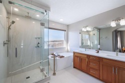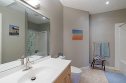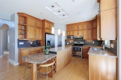 TThis beautifully appointed two-storey home makes a lasting impression with its timeless design, thoughtful layout, and seamless blend of elegance and everyday comfort. With a fully finished walkout basement, a meticulously renovated upper level, and a serene backyard backing directly onto a walking path, this home is perfectly suited for families and entertainers alike. The front entrance welcomes you with a striking open-to-below foyer, creating an immediate sense of space and light. Natural light flows effortlessly between levels, setting a refined yet inviting tone throughout the home. Just off the entry, the formal dining room offers a sophisticated setting for hosting dinner parties, holiday gatherings, or special celebrations, while remaining versatile enough for a home office or sitting room. Hardwood flooring spans the main level, complemented by air conditioning for year-round comfort. At the heart of the home is a beautifully designed kitchen featuring granite countertops, stainless steel appliances, ceiling-height cabinetry, a spacious corner pantry, and a large central island ideal perfect for meal prep. A window above the sink overlooks the backyard, bringing in natural light and reinforcing the home’s connection to its outdoor surroundings. The bright eating nook sits adjacent to the kitchen and offers direct access to the back deck—perfect for everyday dining or effortless indoor-outdoor living. The open-concept living room features a cozy fireplace, creating a warm focal point for relaxing evenings or entertaining guests. A conveniently located two-piece powder room and main floor laundry add to the home’s practical appeal. The fully fenced backyard is a true retreat, backing onto a walking path and framed by mature trees for added privacy and tranquility. From the upper deck to the lower patio accessed via the walkout basement, this outdoor space is ideal for entertaining, relaxing, or enjoying nature year-round. Upstairs, a spacious bonus room with built-in desk and charming window seat provides a versatile family gathering space. Three generous bedrooms share a beautifully renovated four-piece bathroom, while the primary suite offers a peaceful sanctuary with mountain views, a walk-in closet, and a fully renovated five-piece ensuite featuring dual vanities, a soaking tub, stand-alone shower, and private water closet. The fully finished walkout basement expands the living space with a large family and recreation room, an additional bedroom, and a four-piece bathroom—ideal for guests, extended family, or flexible living arrangements. Thoughtfully designed and beautifully maintained, this home offers an exceptional balance of space, style, and setting—where everyday living feels elevated and every detail supports a refined, comfortable lifestyle.