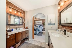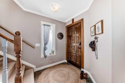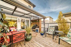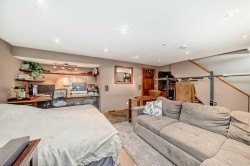 Stunning renovated home on a quiet street in Coventry Hills. This beautifully updated home is a true must-see, offering style, comfort, and attention to detail throughout. The main floor impresses with numerous features including; in flooring heating, a spacious living room with a gas fireplace and pot lighting, and a chef's kitchen featuring custom cabinetry, granite countertops, a farmhouse sink, high-end appliances, and elegant light fixtures. A stylish powder room completes the main level. Upstairs, the large primary suite includes a spa-like ensuite with a luxurious tiled shower featuring multiple nozzles and premium vanities. One of the original bedrooms has been transformed into an expansive walk-in closet, perfectly organized for all your wardrobe and footwear needs—but it can easily be converted back to a bedroom if desired. The additional bedroom is bright with corner windows, and a full four-piece bathroom completes the upper level. The fully finished basement features slate flooring with in-floor heating, a spacious recreation area, wet bar, built-in work space and a generous laundry room with plenty of space for future development. The full-sized double attached garage comes equipped with a built-in heater—perfect for winter months. Step outside to your private backyard oasis, complete with a covered awning, extended deck area, beautifully landscaped yard, five-zone in-ground sprinkler system, and a charming storage shed. Additional comforts include central air conditioning. The outside maintenance of this home has all been done for you including new siding, roof, soffit, facia and eaves! This exceptional home combines modern upgrades with thoughtful design—truly a must-see in Coventry Hills!