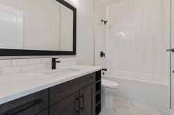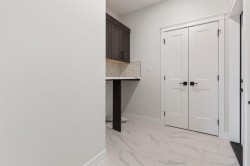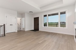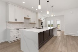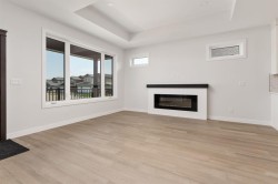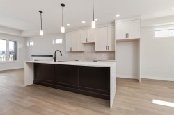 Brand New Build from Battle River Homes. Great Bungalow layout with Oversized Rear Garage 25x24/29 with a floor drain, space for working area and finished to perfection. ICF Foundation, Basement Infloor Heat, Triple Pane Windows. Excellent Curb Appeal with an Inviting Front Covered Veranda. Step inside and take in this new floorplan from Battle River Homes - open concept arrangement sees a front facing living room with cozy electric fireplace with stone accents and mantle, central kitchen and rear dining area that overlooks a private 10x12 no maintenance deck and yard space. 9ft ceilings on the main with 10ft coffered in the living room. Gorgeous kitchen with White Maple Cabinetry, Quartz counters anchored by a richly stained 8'7 central island with eating bar. Very accommodating eating area with room for the whole family and your favorite dining set - there's also a handy pantry. Excellent Primary Bedroom suite with private 4pc ensuite, double sink with quartz counters, a fully tiled shower and a 6x9'2 Walk-in Closet! The main floor also sees a 2nd bedroom at the front - excellent for guests or as a hobby room, an additional 4pc bath and laundry option in the mudroom. Basement is open for development. A wonderful Bungalow floorplan with minimal exterior upkeep. You'll Love It!.