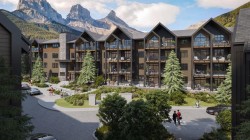 Welcome to Unit 205 in Building 1 of Altitude at Three Sisters—a thoughtfully designed two-bedroom Soleil 2 floorplan offering elevated single-level living with modern alpine flair. This second-floor home features a spacious covered patio, in-floor heating, tile in bathrooms, and durable LVP flooring throughout the main living areas. A 41" upper cabinet package with full-height risers, undermount bathroom sinks, and Samsung appliances—including a built-in cabinetry hood fan and front-control range—reflect quality and function. Complete with tandem underground parking, this residence offers practical luxury in the heart of the Rockies. Upgrades include upgraded microshaker cabinetry, full height cabinetry with riser to the ceiling, under cabinet lighting in kitchen, pot drawers in kitchen and in bathrooms, upgraded panel fridge with autofill water pitcher, custom cabinetry hood fan, extended kitchen island, gas range, electric wall oven, A/C, upgraded lighting package with pendant lighting and pot lights, LEX Valour 50" electric fireplace, full height kitchen backsplash, upgraded Kitchen sink, upgraded LVP flooring, upgraded tile selection in all bathrooms, skirted tub in main bathroom, fully tiled walk-in shower in primary with free standing tub.Monthly condo fees of $660 include heat, water, sewer, building insurance, snow removal, reserve fund contributions, and access to a community spa and hot tub—ensuring a seamless lifestyle. Built by award-winning Logel Homes who have a decades long pedigree of successful developments in Canmore and located in Three Sisters, next to the upcoming Gateway community hub with shops and grocery options, Altitude combines comfort, convenience, and a connection to nature. Possession anticipated Summer 2026. Visit our sales centre and show suite (closed Wednesdays) to explore this exciting new development and secure your future home in Canmore. Residential properties - no short term rentals.