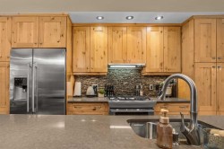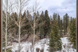 Set directly along the banks of Policeman’s Creek, this 4-bedroom, 3.5-bathroom, over 2,000sqft villa offers a rare opportunity in Spring Creek Mountain Village, all just steps from downtown Canmore. The entry level features a heated single-car garage, two bedrooms, a full bathroom, and a dedicated laundry area, ideal for guests, family, or a flexible workspace. The main living level is open and inviting, anchored by warm hardwood flooring and expansive windows that frame the creek and surrounding trees. The kitchen is well-appointed with quartz countertops, stainless steel appliances, generous cabinetry, and a large island suited for gatherings. The dining area opens to a secondary deck, while the living room is centered around a striking Rundle stone fireplace and provides direct access to the primary deck, with stairs leading down to the creekside patio.The upper level is dedicated to the primary retreat, featuring vaulted ceilings, a walk-in closet, and a spacious 5-piece ensuite. A fourth bedroom with its own 3-piece ensuite completes this level, offering privacy and flexibility for guests.Outdoor living is a defining feature of this home, with multiple decks and patio spaces designed to fully embrace the creekside setting. A peaceful location immersed in nature, yet within easy walking distance of Main Street, trails, restaurants, and shops this is Canmore living at its finest.