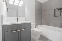 INSTANT EQUITY OF OVER 300K PLUS QUICK POSSESSION HOME !!! A CUSTOM DESIGNED LAKE FRONT MARVEL by SuiGeneris Homes! COMPLETELY RENOVATED DOWN TO THE STUDS WITH ALL NEW ELECTRICAL WIRING, PLUMBING, WINDOWS, SIDING, HUGE MAIN FLOOR DECK,MASTER SUITE PRIVATE LAKE FRONT DECK, Epoxy finish on garage floor. Oversized 2 car garage with epoxy floors, NEW FLOORING, NEW GARAGE DOOR, NEW HVAC, ALL NEW ROOFING, WINDOWS, DOORS, SPRAY FOAM INSULATION THROUGHOUT THE HOUSE AND MORE! COMPLETED WITH A NEW FLOOR PLAN AND ADDITION TO THE HOUSE. Sitting on a HUGE LOT THAT IS RIGHT ON THE LAKE with over 4,200 sq ft of living space. This well planned floor plan offers 5 Beds, 1 flex area, 5.5 baths & an attached OVERSIZED 2 car Garage. 3 ENSUITE BEDROOMS!!! ONLY 10 MINUTES TO/FROM CALGARY. The professionally designed interior is an elegant balance of light tan hardwood floors with white and grey walls and black finishing. The combination of Large windows and Vaulted ceilings in the living areas and bedrooms give lots of natural light to the living areas. In addition to the lake views, enjoy the views of the golf course from 2 bedrooms and a loft on the upper floor. Other features include Paved, drive through driveway, rich combination of Smooth Acrylic Stucco, stone & batten boards on exterior, Custom Cold Air Return Grills, Built in custom closet systems, ship lap feature walls, 2 fire places on main floor and one in master bedroom, Roughed-in Smart monitoring systems, Hardwood Flush Mount Vents in hardwood areas, open riser stairs, 5” Engineered Hard Wood on main floor, LVP basement floors and mudroom, premium carpet, Custom Shower Base with tile to ceilings in all showers, Premium Delta Plumbing package, 36” lower cabinets. All vanities have upgraded drawer style fronts, 8” Stone back splash, High efficiency Tankless Water Heater, Roughed-in Garburator, roughed-in Central Vacuum, High Efficiency Furnace & Smart Thermostat, BBQ Gas line and roughed in garage heater. The kitchen features include a deluxe Kitchen Aid appliance package with waterline to the fridge. Offering Quick and easy access to highway 16, Downtown Calgary, lots of shopping at the nearby East Hills Mall, restaurants, nearby schools and other conveniences. Drive through drive way with fully completed landscaping. MOVE IN READY HOME. READY FOR QUICK POSSESSION