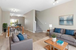 Welcome to your new home in the heart of Chestermere – a bright, beautifully designed three-level townhome that perfectly blends comfort, convenience, and lifestyle. This spacious unit offers two generous bedrooms plus a versatile den that can easily serve as a third bedroom, home office, or guest space, providing flexible living options to suit your needs. You'll love the South facing yard and the brand new laminate flooring throughout the home!Bathed in natural light throughout, the open-concept main living area is warm and inviting, ideal for both quiet evenings in and entertaining friends. Step out onto the peaceful balcony located just off the kitchen – the perfect spot for morning coffee or a relaxing evening meal as you soak in the calm surroundings.Situated in a well-managed, family-friendly complex with low condo fees, this home offers peace of mind and excellent value. Location truly sets this property apart. Just steps from your front door, you’ll find Safeway, McDonald’s, medical and dental offices, and a wide array of fantastic restaurants and amenities – everything you need is literally across the street.But perhaps the biggest highlight is Chestermere Lake, directly across the road. Enjoy paddleboarding, kayaking, swimming, or just taking in the stunning views. Beautiful walking and biking paths invite you to explore the outdoors year-round, making this an ideal location for those who appreciate both nature and convenience.Whether you're a first-time buyer, downsizer, or looking for an investment in a thriving community, this property offers an incredible opportunity to live where lifestyle and location meet.