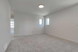 Welcome to the York by Broadview Homes in Dawson’s Landing. This 2,029 sq. ft. home offers 3 bedrooms, 3 full bathrooms, and a versatile main floor flex room with a full bath, perfect for guests or a home office. The heart of the home is a spacious kitchen with stainless steel appliances, plenty of counter space, and elegant finishes, opening to a bright living area complete with a cozy gas fireplace. Upstairs, enjoy a bonus room, two secondary bedrooms, and a massive primary bedroom featuring a spa-inspired ensuite and walk-in closet. With 9’ ceilings on the main and basement levels, plus basement plumbing rough-ins for future development, this home combines style, space, and functionality.
