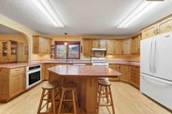 Welcome to your dream family home, perfectly located on an oversized lot with plenty of parking, including a large concrete RV parking area. The private back yard has a playhouse for the kids tucked in one corner and backs onto a large park with playground. Spacious yet cozy, this 6 bedroom home with over 3200 sq. ft. of developed living space offers the perfect blend of comfort, functionality, and charm. Entering the beautiful front courtyard is the start of your journey to discovering all the great features this home offers, like the large open entrance area, the classic wood-burning fireplace with log lighter and solar tube in the sunken living room, hardwood and Artica tile flooring, carpeting that was replaced just three years ago, solid pine doors in the kitchen cabinetry and throughout most of the house, a large kitchen island, a gas stove along with a second oven, three generous-sized bedrooms, and a family bath that boasts a jetted tub as well as a separate shower. The large lower level family room is home to the second fireplace, this one gas. Two of the three basement bedrooms offer double pocket doors and built-in desks. A large laundry room has plenty of room for a second fridge and freezer and a shiny new efficient boiler in the utility room is sure to impress. Dining room garden doors offer access to the large rear deck with pergola that overlooks the rear yard and park behind. Located in the welcoming community of Didsbury, this home combines small-town charm with convenient access to local amenities, schools, and parks and the Didsbury golf course just across the street. It’s an ideal setting for those looking to settle down in a friendly and serene neighborhood. Don’t miss out! Schedule your viewing today and envision the life you’ll create in this great family home.
