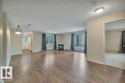 HUGE LIVING SPACE! IMMEDIATE POSSESSION! STEPS TO WHITEMUD CREEK TRAILS! This HUGE 1170 sq ft 2 bed, 2 bath main level CORNER unit shows exceptionally well, & is perfect for first time buyers, down sizers or investors looking for a terrific complex close to gorgeous walking trails & amenities! Spacious entryway leads to an open concept living / dining space w/ laminate flooring; plenty of windows for ample natural light. Corner gas fireplace for cozy winter nights, galley kitchen & room for the large dining table & sectional! Two good sized bedrooms, including the primary bedroom w/ 3 pce ensuite & walk through closet. Separate laundry / storage room, additional 4 pce bath, & covered patio to enjoy the summer sun. Underground heated parking & storage locker w/ many surface visitor stalls for guests. Condo fees of $519.52 includes heat, water / sewer, & access to the social room, gym, & more! Blocks to shopping, amenities, & quick access to both the Whitemud & Henday make this one a winner!