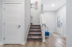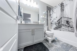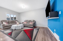 Pride of original ownership, North facing , No house at back , super clean, huge backyard , well maintained 1615 sqft front double attached garage home located in most desired community of Desrochers . This home is aperfect for growing families , first time home buyers and investors with almost everything near by. Rec centre is 5 mins walk, Public high school 2 mins drive other 3 schools near by ,Quick and easy access to 41 ave and highway 2, quick commute to future LRT and future Hospital. 3 spacious bedrooms including huge master , 2 full bath,1 half bath, bonus/living space upstairs to enjoy the free time. Main floor is a uniquely architectured to every inch of space, Chefs dream kitchen with ceiling height cabinets ,spacious Laundry room with storage shelving. Living area is spacious to enjoy free time with cup of coffee with family or guest. Patio door leads to wooden deck and fully landscaped backyard to enjoy summers. Basement is unfinished and awaits your personal touch. Seeing is believing.