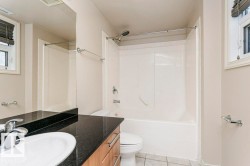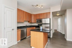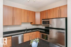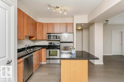 The Vivacity is one of Edmonton's stylish high-rise's in the downtown area. Convenient to everything in an exceptional location. This end unit one of two with a huge balcony and three floors above ground. 9’ foot ceilings, new vinyl flooring, stainless steel appliances, black granite counter tops in kitchen and both baths and maple cabinetry in the kitchen. Convenient in-suite laundry and the primary bedroom offers a 4pc ensuite. The HUGE deck ideal for entertaining and to enjoy the amazing views of the river valley. Steps away from shopping, restaurants, transportation and Grant MacEwan College. Monthly condo fees $588.00