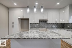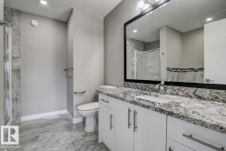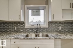 Outstanding investment opportunity in one of Edmonton’s most desirable neighbourhoods – Grovenor! This impressive half duplex combines style, comfort, and an unbeatable location—just steps from the new LRT line, minutes to downtown, and only 10 minutes to West Edmonton Mall. The bright, open-concept main floor showcases modern finishes, including durable laminate flooring, a spacious kitchen with granite countertops, ceramic tile backsplash, sleek white cabinetry, and stainless steel appliances. Upstairs, a wide stairwell makes moving furniture effortless and leads to three generous bedrooms and two full bathrooms with ceramic tile and plush carpeting. The primary bedroom faces east for refreshing morning light, while the other two enjoy warm western exposure. Completing this exceptional home is a legal basement suite featuring a large living area, one bedroom, and a full bathroom—ideal for rental income or multi-generational living. A true must-see!
