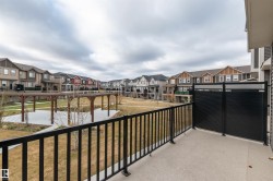 Welcome to this Walker Lakes! Mattamy's Titan Townhouse. This 1600+ SQ.FT Townhouse has 3 BEDROOMS, DEN/FLEX ROOM, 2.5 BATHROOMS, ATTACHED DOUBLE GARAGE, CENTRAL A/C, 9 FOOT CEILINGS AND LOW CONDO FEES OF $190/month!! As you enter your front door, you have access to your double garage and you also have an office/flex room. Going up to your second level you are greeted with a stunning kitchen with 11 FOOT QUARTZ ISLAND, SS appliances, built-in microwave oven and vinyl plank flooring, laundry area, and powder room. The third level has 3 spacious bedrooms, including a large primary suite with walk-in closet and full ensuite with quartz tops. The other 2 bedrooms have their own full bathroom with quartz tops. Pride of ownership is evident throughout; this one won't last!! SHOWS 10/10. Enjoy walking trails, playgrounds, shopping, schools, the airport, & recreation centres. Located a 5 minute walk from Shauna May Seneca School K-9. Welcome home!