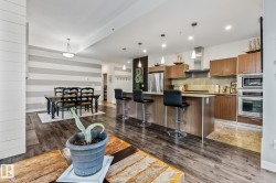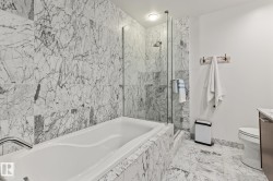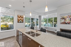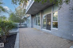 This STUNNING 2 bedroom 2 bathroom condo is located in one of Edmonton's desired locations, with easy access to the LRT, major roadways, shopping, restaurants, banking and professional services. This unit comes with 2 (titled) HEATED UNDERGROUND PARKING STALLS (located side by side), titled storage cage, access to the fully equipped fitness room, a private entrance, and a large landscaped private patio with a natural gas BBQ hook up. The kitchen has stainless steel appliances, a countertop gas stove, built in wall oven and microwave and ample room for cooking and entertaining at the massive island which is completed with granite countertops. Down the hall is a laundry room with a full sized washer and dryer and a 4-piece bathroom as well as two large bedrooms. Both bedrooms are carpeted and the bathrooms are finished with marble and granite. The primary bedroom has dual closets, and a luxurious 5-piece en-suite featuring a huge soaker tub and double sinks. Be ready to be impressed by this amazing home!