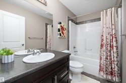 Welcome home to this beautifully designed half duplex that blends comfort, space, and modern style. Step onto the charming front porch veranda and into a bright main floor featuring 9-foot ceilings and a warm living room filled with natural light from large windows. The kitchen is both stylish and functional, complete with stainless steel appliances and quartz countertops, perfect for everyday living and entertaining. Upstairs, you’ll find a spacious primary suite with a walk-in closet and private ensuite, along with two generously sized bedrooms and a full washroom. The fully finished basement adds even more living space, offering a large bedroom, family room, and full washroom—ideal for guests or a growing family. Enjoy outdoor living on the 10x10 deck with natural gas hookup, and appreciate the unbeatable location close to shopping, restaurants, all amenities, public transportion, schools and quick access to the Anthony Henday. This inviting home checks all the boxes—don’t miss out on this gem!