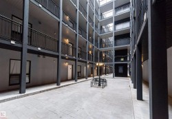 Experience urban living at its finest in this stunning condo, ideally located on the vibrant north side of Oliver Square and just a short walk from Rogers Place. This spacious, open-concept home features soaring ceilings and high-end finishes throughout. The chef-inspired kitchen boasts granite countertops, a large island, and premium stainless steel appliances. Natural light pours into the expansive living area, showcasing elegant laminate flooring and oversized windows. The king-sized primary suite includes a walk-through closet and a sleek 3-piece en-suite with a walk-in shower. A versatile second bedroom or den is perfect for guests, a home office, or creative space. Enjoy the convenience of a stylish 4-piece main bath and an in-suite laundry room with extra storage. Step outside to relax or entertain on your private concrete patio. This is the perfect blend of comfort, style, and location—ideal for professionals, first-time buyers, or downsizers.