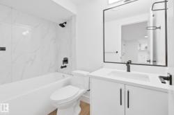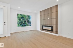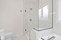 2 Bedroom Legal suite! Brand new 5-bedroom, 4-bath luxury infill in prestigious Inglewood, professionally measured at 1,918 sq ft plus a fully finished 2-bedroom legal basement suite with 9’ ceilings. Just minutes from downtown Edmonton, this upscale home offers an open-concept main floor with a sleek fireplace, chef’s kitchen with quartz countertops, waterfall island, and spacious dining and living areas. All bedrooms feature walk-in closets, and the stunning primary suite includes a designer feature wall and spa-inspired ensuite. The legal basement suite includes a full kitchen, bath, laundry, and private entrance—ideal for extended family. Double detached garage, modern finishes, and incredible location close to parks, schools, shopping, and the River Valley. Warranty and appliance allowance.