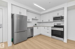 Located in Laperle, this ground floor level condominium is mere minutes from West Edmonton Mall and other shopping, hospital and transit. Newly rebuilt in 2024, the unit features all new appliances, windows and vinyl plank flooring. It also features a wall mounted glass fireplace in a sunken living room, an assigned parking stall and storage unit. The main bedroom has a walk-in closet and ensuite, and there is a second bedroom. There is also an in suite laundry room. The complex features a fitness centre & bike storage room. Close to parks, schools and child care facilities, this unit is perfect for a first time buyer or a small family.