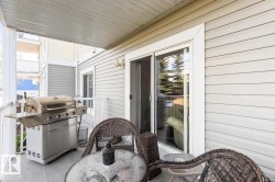 Welcome to Aspen Meadows! Modern Main Floor Living with Green Space Access Step into this bright and welcoming main floor 873 sq ft, 2 bedroom, 2 bathroom home featuring concrete floors and a private deck that opens directly to green space! Perfect for morning coffee, pets, or simply enjoying nature from your doorstep. The kitchen offers sleek modern cabinetry, black appliances, and beautiful granite countertops, ideal for casual dining or entertaining. The spacious living area flows seamlessly to the Northeast-facing deck perfect to enjoy our summers! The large primary bedroom includes a walk-through closet and a private 3-piece ensuite with an oversized shower. A second bedroom is perfect for guests, a home office, or media room. In-suite laundry with a spacious storage room, 1 titled surface stall complete this fantastic condo! Located in a well-maintained building within walking distance to shopping, restaurants, transit, and mins from the Whitemud and Henday!