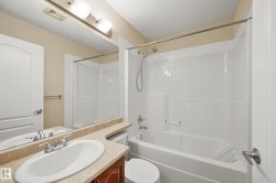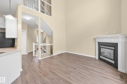 Welcome to RUTHERFORD LANE. This well kept 2 storey townhouse located in a quiet area. Main floor features HIGH CEILINGS open to below in the living room with GAS fireplace. White kitchen cabinets looking over the dining room. Upper floor offering a nice sized MASTER room with VAULTED ceiling and 3 piece en-suite. Two more good sized bedrooms and a 4 piece full bath on the upper floor as well. Basement finished with FAMILY ROOM and a WETBAR. Brand new HE VINYL PLANK flooring throughout the main and upper floor. New paint throughout as well. It comes with DOUBLE attached garage. Walking distance to PUBLIC TRANSIT, SHOPPING. Close to SCHOOL, PARK and all amenities. Easy access to LRT, SOUTH COMMON, ANTHONY HENDAY freeway.