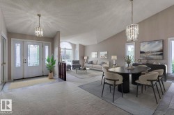SPECTACULAR IN BLUE QUILL ESTATES! Amazing opportunity in this very desirable neighborhood! This gorgeous and meticulous Ace Lange built (original owner) bungalow offers 4200+ sqft of total living space, sits upon a beautiful 9400+ sqft lot, and is backing a lush green space. The sprawling main floor features a very welcoming entrance, huge family room, formal dining area, large kitchen w/s.s. appliances, living area w/fireplace, and soaring vaulted ceilings throughout. Spacious primary suite w/renovated 5-pc ensuite, 2 additional bedrooms, additional 4-pc bath, and laundry/mudroom. The lower level offers an enormous rec area, 2 bedrooms, 4-pc bath, and huge storage/work space. Other features include: newer roof, some windows, furnace, HWT, sunroom, and oversized garage. Located close to great schools (Westbrook/Vernon Barford), the Derrick Club, and steps to Whitemud Creek Ravine. Truly a great home!