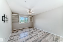 Welcome to The Lodge at Lewis Estates! This sought-after 30+ adult living complex feels like a mountain lodge retreat, complete with fitness centre, hot tub, steam room, party room, theatre, two rooftop patios, and a car wash — all just steps from the golf course. TIHIS UNIT FEATURES A RARE TITLED STORAGE UNIT! This main-floor condo offers 2 bedrooms and 2 bathrooms with a bright, open floor plan. The chef-inspired kitchen features Decorastone resurfaced granite countertops, abundant cabinetry, and a large island. The spacious bedrooms are separated by the living room, which opens to a west-facing covered patio with park views — the ideal spot to enjoy warm summer evenings. Highlights include a 3-pc main bath, 4-pc ensuite, in-floor heating, in-suite laundry, and storage. Complete with A titled parking stall very close to the elevators. Cats, birds & fish permitted with board approval (sorry, no dogs). Conveniently located near Transit, shopping, WEM, and with easy access to the Anthony Henday.
