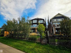 Sweeping custom built 3 bedroom/3 bathroom (w/ bonus room) two-story WALKOUT DREAM HOME BACKING BIG LAKE in the heart of highly desirable community of Hawks Ridge. Airy 2,433+ sq ft. layout is accentuated with golden oak longboard flooring, an abundance of floor to ceiling windows, and soaring 18' great room ceiling detail that bathes the home in warm lake front light. Gourmet kitchen boasts designer waterfall countertop details, high end S/S appliances, walk-through pantry, and large central island that overlooks sun-swept dining and living space. To the side, patio doors lead to elevated patio overlooking private OUTDOOR OASIS w/ $100,000 worth of UPGRADES offering dream indoor/outdoor living. Upstairs reveals open-concept bonus room overlooking the home as well as three bedrooms including oversized primary w/ spa-like mid-century 5 pc ensuite replete w/ walk-in shower, tub, double sinks, and walk-in dressing room. Add'l amenities include OVERSIZED HEATED GARAGE, A/C, mainfloor den, and SOLAR PANELS.