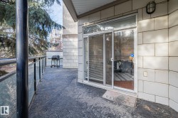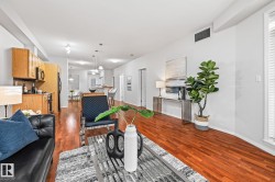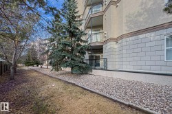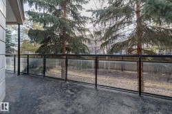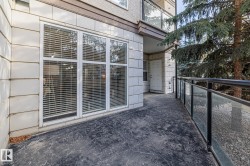 Presenting a flawless, newly refreshed condo with 1,052 sq ft and 10-foot ceilings—a must-see! This is not a typical ground-floor unit; the private, south-facing balcony is raised, providing an elevated outdoor retreat over landscaping. The open living area features laminate floors and vast windows, ensuring a bright setting. The kitchen includes all appliances and a large eat-at island. Step out to your raised, secluded balcony—a peaceful spot for sun and relaxation. The unit offers two bedrooms, including a large main suite with a walk-in closet and a three-piece ensuite (walk-in shower). The second room is ideal as a study or den. Convenience items include a four-piece main bath, in-suite laundry, and a storage locker. A sought-after titled tandem parking stall fits two vehicles! Located perfectly, you get high walkability with easy access to groceries, shops (including the Italian Centre), and major roadways. Don't miss this opportunity for a great home in the prime community of Empire Park!