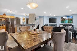 Welcome to this 5 bedroom open and bright family home on a corner lot in Oxford with nearly 2,000 sq ft of finished space above grade plus a fully finished basement. Large windows provide excellent natural light throughout. The kitchen features GRANITE countertops, an island with extended eating bar, and newer appliances, opening to the main living area, deal for daily living and entertaining. Main floor laundry adds convenience, and a cozy fireplace creates a warm atmosphere. A SUNROOM offers additional year-round living space. Upstairs includes a spacious primary bedroom with ensuite and wall-to-wall closet space, three additional bedrooms, and a full bathroom. The finished basement has one bedroom and one full bathroom, totaling FIVE BEDROOMS and 3.5 bathrooms. Recent updates include a new hot water tank and A/C. HEATER in double garage. Large fenced yard with deck. Conveniently located near schools, transit, shopping, and minutes from Anthony Henday.