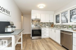 Step inside this BEAUTIFULLY renovated townhouse in Glengarry. NOT a condo, so no fees or pet restrictions. Main floor offers an all WHITE kitchen with stainless steel appliances and WELL-APPOINTED living and dining area. Upstairs boasts a LARGE primary bedroom with HUGE closet, GORGEOUS brand-new 4-piece bathroom and two additional bedrooms. Downstairs is a GREAT rec room and BRAND-NEW 3-piece bathroom. Watch your kids play right outside your front window at the park or walk them across the field to school. Updates include vinyl siding, windows, furnace, hot water tank as well as all new flooring, paint and roof. EXCELLENT location close to multiple schools, Downtown and the Yellowhead