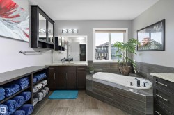 Discover your executive dream home on exclusive Adamson Drive! This custom-designed 2-storey masterpiece features 3 bedrooms, 3 baths and a versatile den, blending elegance & functionality. The striking front exterior showcases ‘CLIFFSTONE BANFF SPRINGS’ stone & double entrance doors set the tone for luxury. Inside be captivated by the 18-foot window wall flooding the Living Room with natural light & highlighting a cozy corner fireplace. The Chef-inspired kitchen boasts a spacious island, stainless appliances, granite countertops & corner pantry. LR & DR remote blinds. Retreat to the master suite oasis with a luxurious corner tub, walk-in shower, dual sinks, built-in walk-in closet & outdoor shutters. Main floor laundry adds convenience. Enjoy a spectacularly landscaped west facing backyard, perfect for entertaining or relaxing. High-ceiling unfinished basement is ready for your custom touch. Rare TRIPLE-ATTACHED heated insulated garage. This magnificent home offers everything you've been dreaming of!