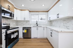 Discover this extensively renovated home where modern upgrades meet functional design. Every detail has been thoughtfully updated, including new windows, shingles, upgraded 100-amp electrical service with a new panel, PEX plumbing lines, new insulation throughout, stylish flooring, and updated lighting. The main floor features a brand-new kitchen, three bedrooms, and two full bathrooms—perfect for comfortable family living. The fully finished basement offers a separate entrance, a brand-new kitchen, two additional bedrooms, and a full bathroom, creating excellent potential for extended family or added flexibility. Outside, enjoy newly poured concrete for the garage pad, driveway, and additional parking along the side of the garage—ideal for multiple vehicles or guests. This move-in-ready property delivers peace of mind with major upgrades already completed, while offering versatility, modern finishes, and exceptional value. A rare opportunity to own a truly turn-key home with thoughtful improvements.